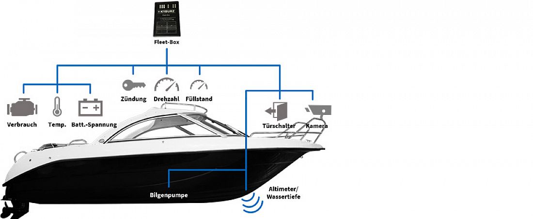 Um zu evaluieren, ob sich das Fleet System auch für den Einsatz auf dem Wasser eignet, habe ich Martin Kyburz’s Boot mit Fleet ausgestattet. Dabei habe ich zusätzlich zur Fleet-Box diverse Sensoren (Türsensor, Durchflussmengenmesser, Wasserstandsensor, etc.) in das Boot integriert, um weitere, vom Boot nicht erfasste Grössen, wie z. B. den Treibstoffverbrauch, messen zu können. Zudem ermöglicht die auf dem Deck montierte Kamera, eine einfache optische Prüfung des Bootszustandes, nachdem es z. B. gestürmt hat.
