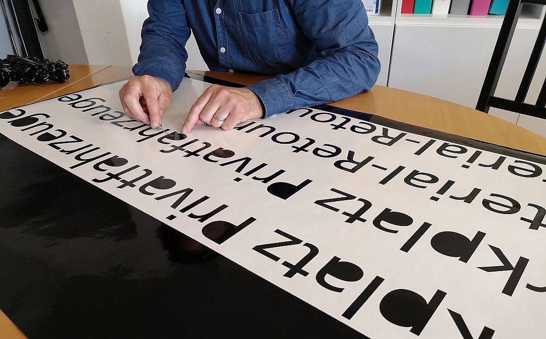 Letzte Woche wurde bereits fleissig produziert: die Beschriftung für den «Hangar» wurde geplottet.