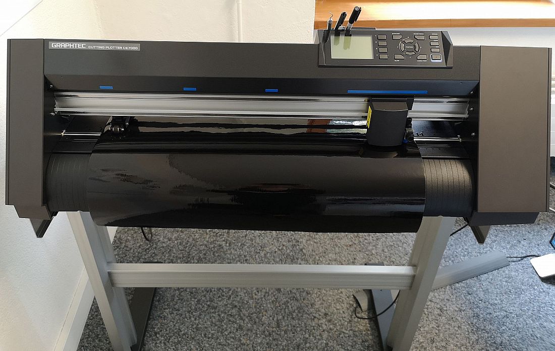 Seit kurzer Zeit steht im Marketingbüro unser neuer Schneideplotter. Wie der Name bereits sagt, kann dieses Gerät beliebige Formen und Schriften ausschneiden. So haben wir nun die Möglichkeit vieles individuell selbst herzustellen – wie zum Beispiel Beschriftungen von Fahrzeugen, für Kundenfahrzeuge oder auch Firmeninterne Beschriftungen sind möglich.