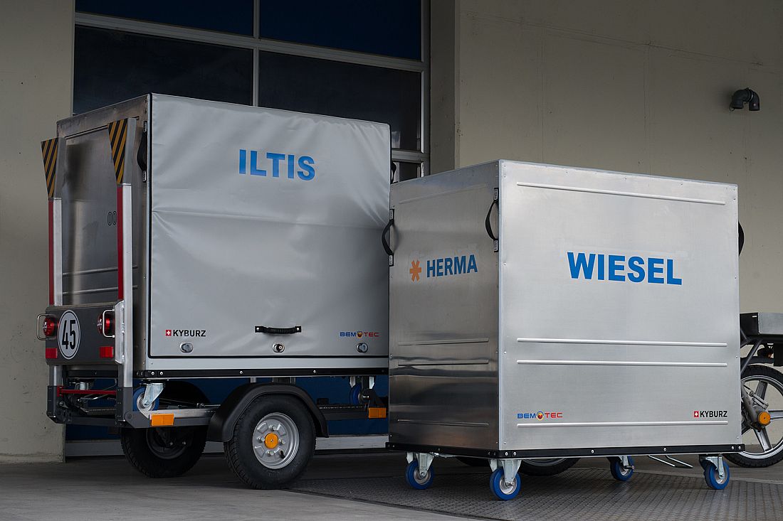 Unser Mitarbeiter Heinz Romer entwickelte Ende 2020 eine neue Abschleppvorrichtung, welche zu einem neuen Produkt in unserem Webshop wurde. Der praktische Anhänger kann an der KYBURZ DXP Kupplung angeschlossen werden. Das Vorderrad wird auf den Anhänger befestigt, um ein Elektro-Dreirad mühelos abschleppen zu können. Der Abschleppanhänger kostet Fr. 789.23 exkl. MwSt. Wenn du Interesse am Abschleppanhänger hast, findest du diesen in unserem Webshop.