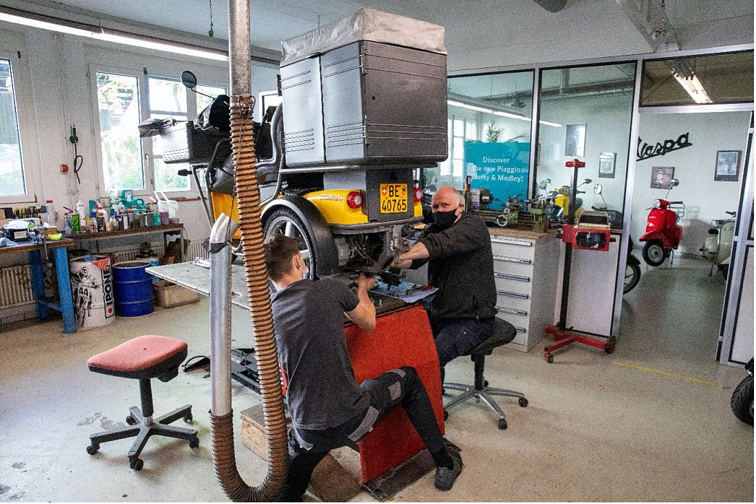 Jan Koldušek und Ilir Caka ergänzen die Produktion an der Tannenstrasse. Jan war letztes Jahr schon für drei Monate hier und hat in Prag eine Bachelorarbeit über den eRod geschrieben. Ilir hat eine vielseitige Vergangenheit: Er ist schon als Chauffeur herumgefahren, aber hat auch im renommierten Café Schober in der Zürcher Altstadt gearbeitet.