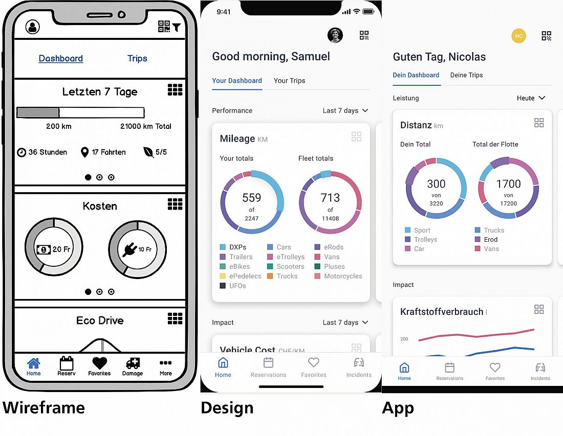 Laurence: Zuerst schaue ich mit Tino, ob alles ok ist oder ob er eventuell Unterstützung benötigt für die Admin oder den Einkauf. Dann schaue ich meine Emails an und bearbeite sie. Es kann auch sein, dass ich auf Besichtigungen bin oder Probefahrten mit den Kunden durchführe. Beim Fleet kontaktiere ich Firmen in der Westschweiz und präsentiere unser Fleet System. Ich poste ein- bis zweimal wöchentlich Beiträge auf unseren social Media Accounts über den eRod.
