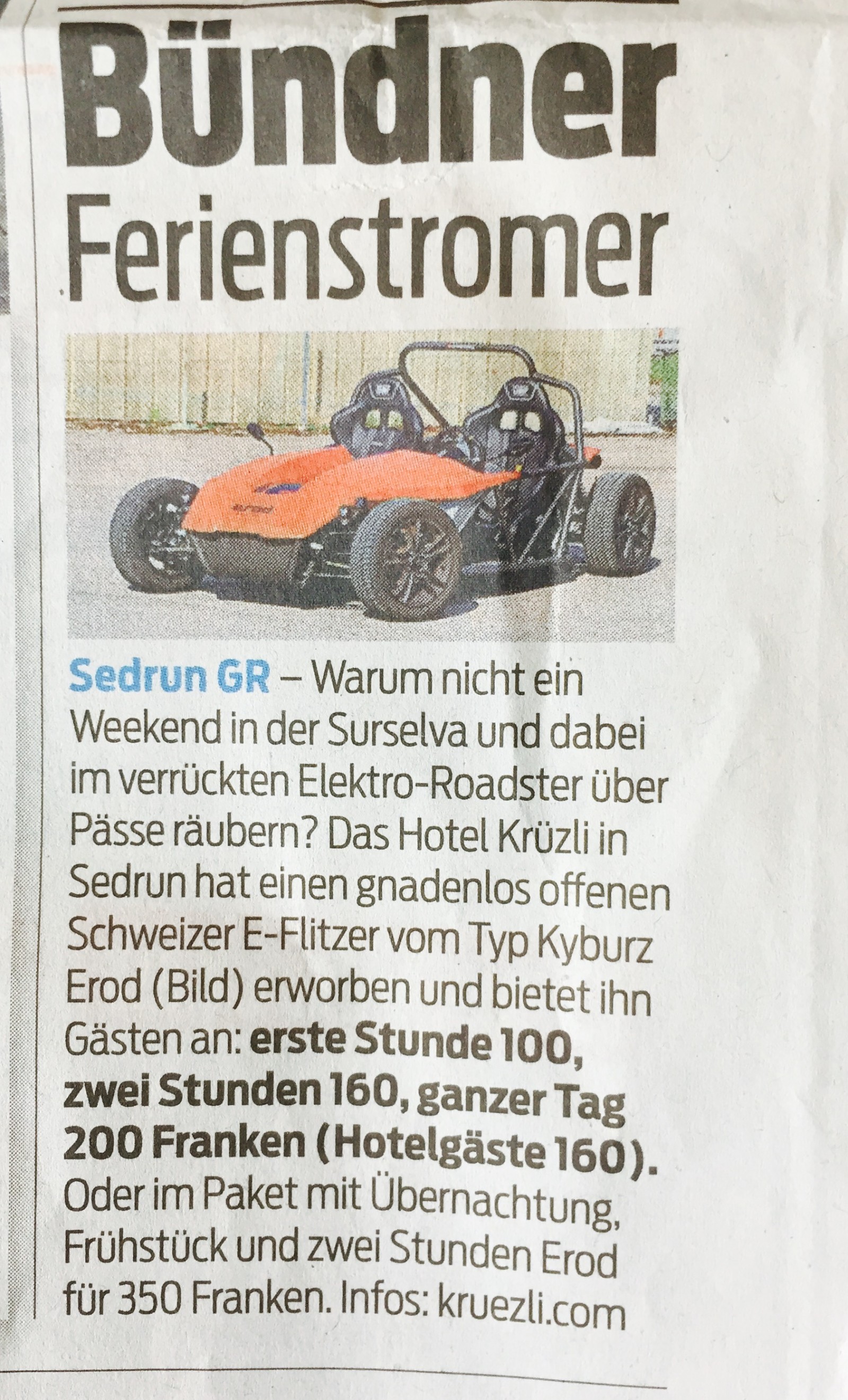 Medienberichte über KYBURZ Switzerland zurück Bündner Ferienstromer Warum nicht ein Weekend in Surselva verbringen? zurück