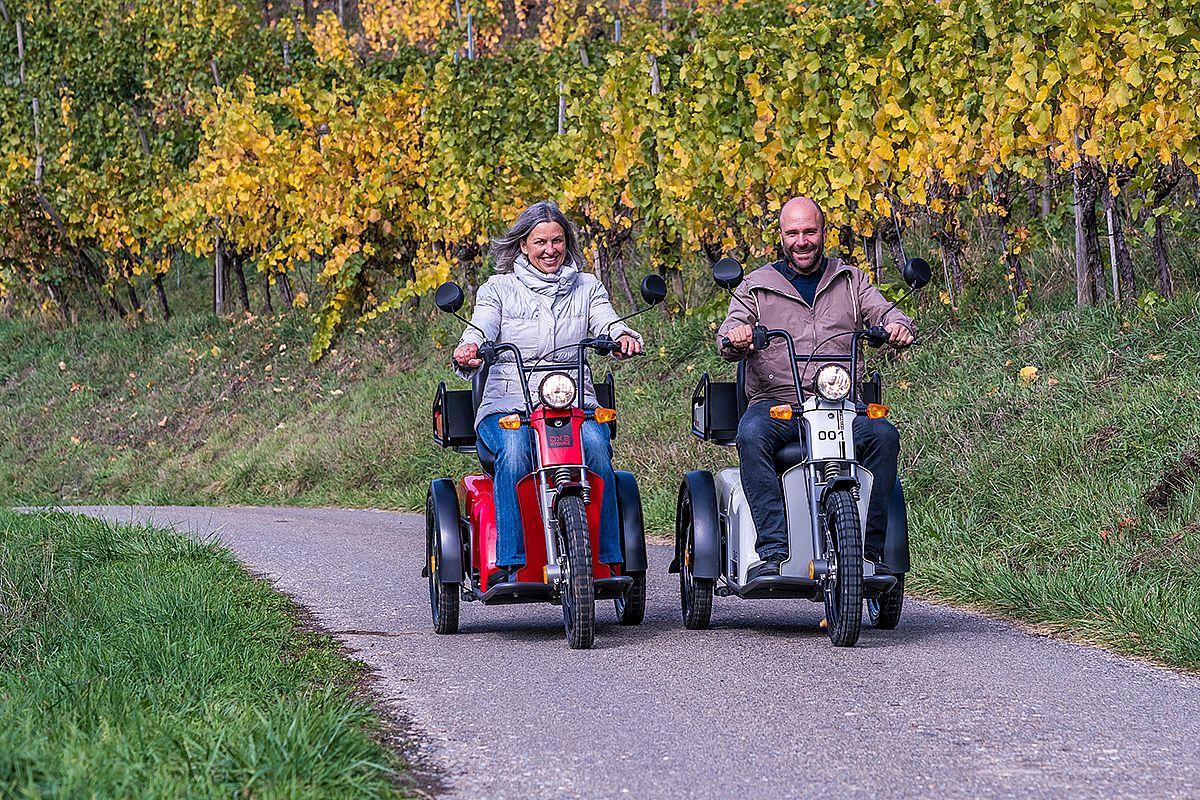 Die einfache und sichere Handhabung ermöglicht Besuche bei Freunden und Verwandten. Auf der Ladefläche werden Einkäufe transportiert. Fahrten zur Post oder Bank sind mit dem Elektro-Dreirad Alltag.
