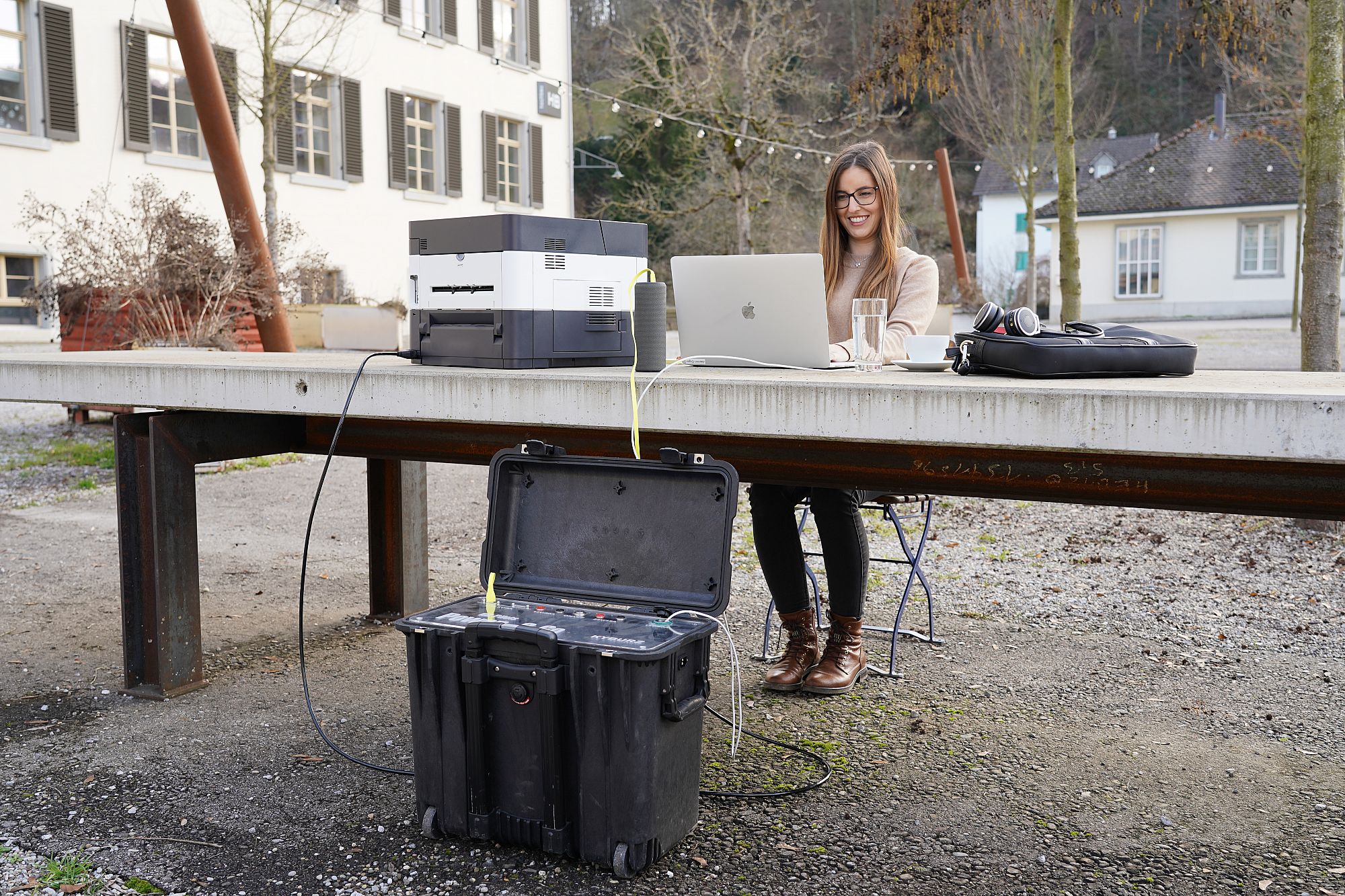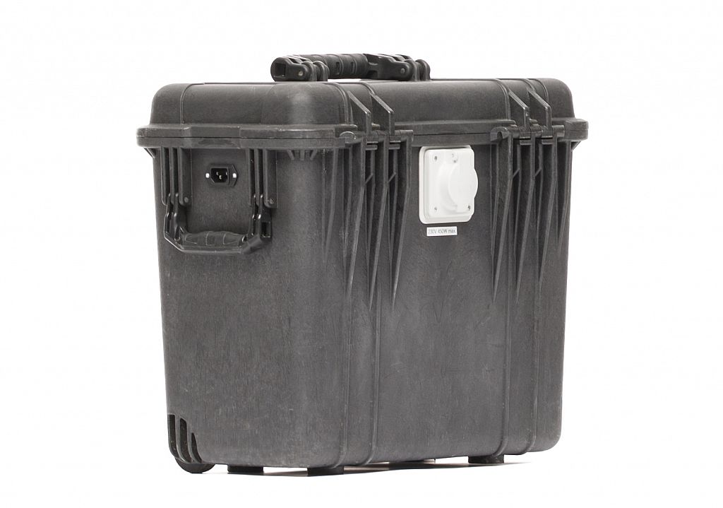 In ein robustes Pelicase eingebaut, ist unser KYBURZ PXP portabel wie ein üblicher Rollkoffer. Er stellt Ihnen dank verschiedener Anschlüsse überall dort bis zu 230 V zur Verfügung, wo der Strom sonst fehlt und eine Powerbank einfach zu klein wäre – sei das ein Outdoorbüro oder für die Beleuchtung auf einer Baustelle.