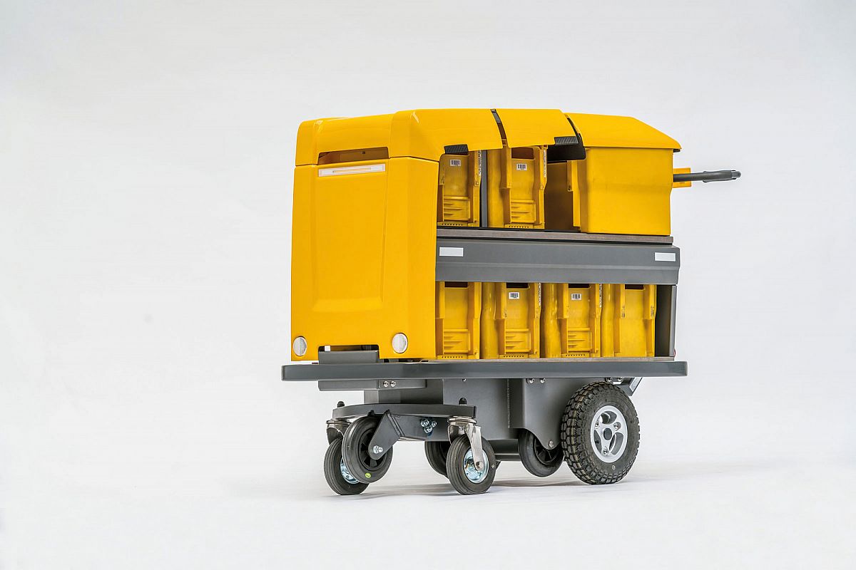 Der eTrolley ist der elektrische Handwagen für die Postzustellung. Ob in der Fussgänger-Version oder mit angehängtem rollenden Trittbrett ausgerüstet: Stark, handlich und robust erleichtert der eTrolley dem Postboten die Arbeit.