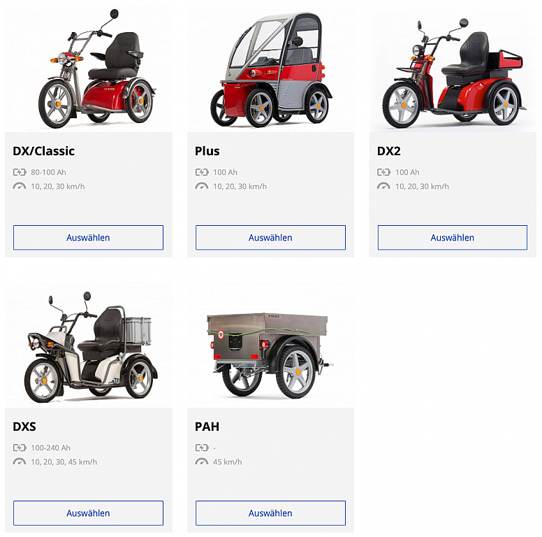 On our website, there is a possibility to rent online KYBURZ vehicles. We offer these vehicles: DX/Classic, PLUS, DX2, and DXS. Also, our trailer, the PAH, can be rented. Already from a price of Fr. 20.- per day you can move with one of our vehicles. Click on the link below and you will be taken to our rental tool. There you enter the desired driving license category. The selection will be limited to legal models and maximum speeds. Now you can choose your model and select the rental period and location. The rental price will be calculated automatically. After entering your contact details, your vehicle is almost at your home.