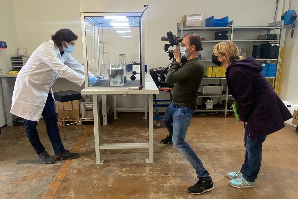 A television crew from SRF filmed the battery recycling in Freienstein. From the removal of the batteries to the disassembly into their individual components, cameraman Martin Amsler filmed all the processes. TV producer and journalist Sandra Odermatt asked competent questions in interviews with Yunus Ruff and Olivier Groux.