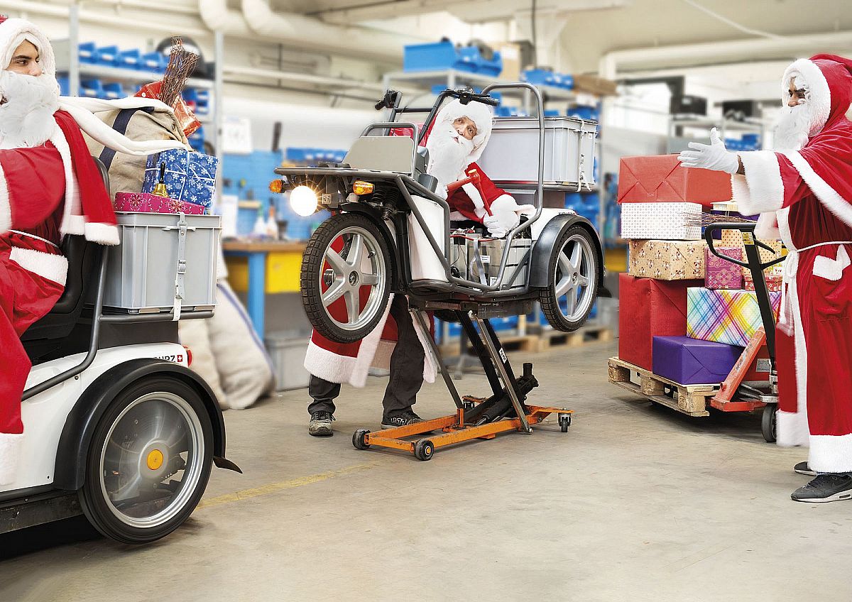 The eTrolley 7+1 was specially developed according to the requirements of Deutsche Post. A vehicle was required that offers space for 7 boxes with letter post and one box with the personal belongings of the delivery person. This is how the name "7+1" came about (7 boxes with letter post, one box with personal items). All boxes must be lockable. The first prototype of the eTrolley 7+1 was built in 2014. Since then, over 120 eTrolley 7+1 have rolled off the production line. Already during the development and still today, the main people responsible for this vehicle are Rolf Menzi and Wilfried Hahn.
