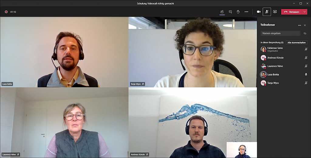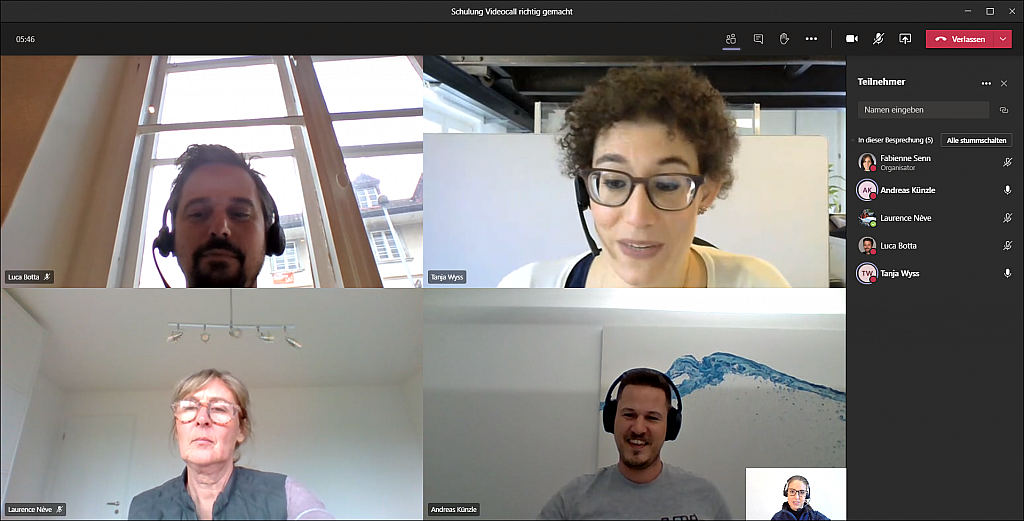The last Videocall training will take place this week. With a lot of fun, Luca and Fabienne were there as instructors. Luca played an untalented video call participant, who became a sympathetic participant with tips & tricks during one hour. See for yourself.