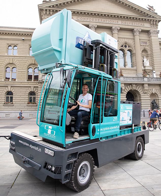 In Zermatt, Schwendimann disposes of waste under the name "System Alpine Air." The 50 collection containers are all equipped with a compressor. This allows consideration to be given to the tight space conditions. Thanks to a reduced volume on-site, fewer trips are necessary. An electric side loader handles a variety of transport, loading, and lifting tasks in Zermatt. "At the moment, we are the only ones who have key figures for such an operation," Schwendimann proudly tells us and sees possible applications for the system throughout the country.