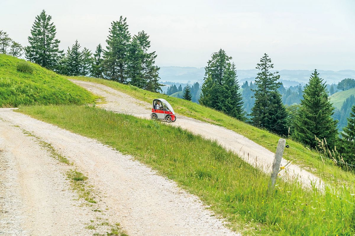 Dans son KYBURZ PLUS Janine Landweer roule sur l'alpage