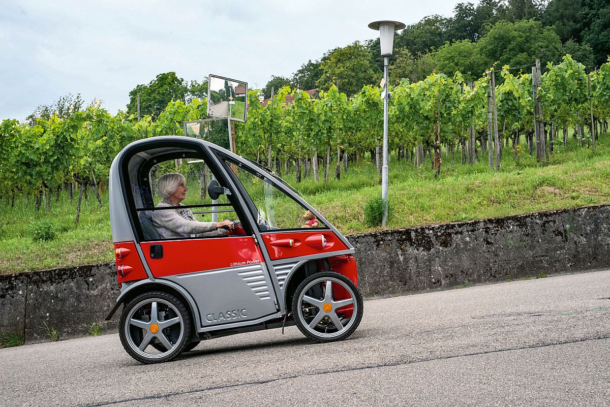 Le véhicule électrique KYBURZ PLUS rend indépendant! Le véhicule à quatre roues avec cabine est sûr et fiable par tous les temps. Les jeunes et les seniors conduisent le PLUS avec le même enthousiasme.