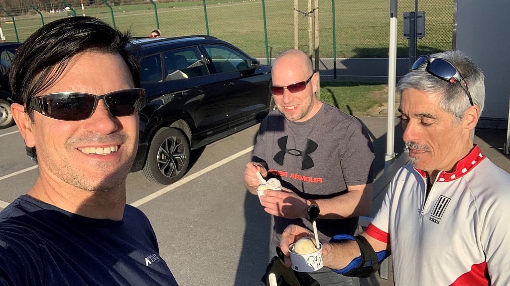 Un tour et environ 70 minutes plus tard, bien sûr à un rythme tranquille, les trois se réjouissaient d'une glace déicieuse bien méritée.