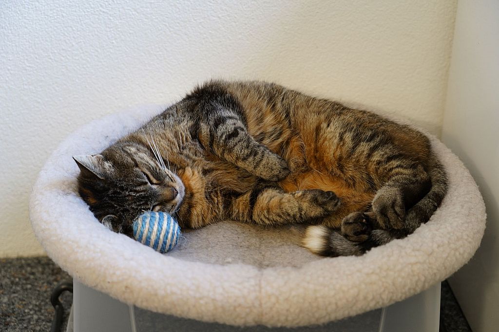 Permettez-moi de vous présenter notre chat domestique Kyburzine. Vous devez penser que je plaisante, mais ce n'est pas le cas. Elle nous salue tous les matins et a hâte d'aller chercher sa nourriture. Ensuite, elle aime bien dormir dans le bureau. Vous la trouverez principalement dans nos services de marketing, de back office et de comptabilité. Nous partageons la "garde" avec notre voisine Sonja Steigrad.