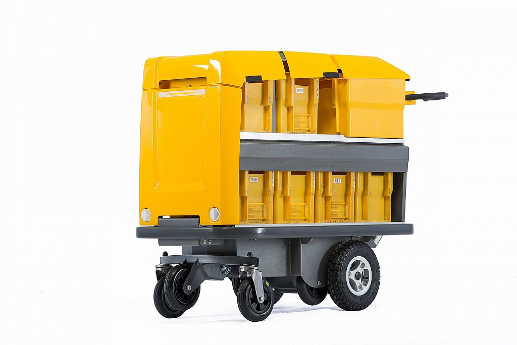 Le véhicule est tellement populaire que la Deutsche Post AG a choisi ce produit comme outil de travail standard. Le eTrolley 7+1 et le KYBURZ ont satisfait à toutes les exigences en matière de sécurité et de fiabilité, conformément aux prescriptions strictes de la Deutsche Post.