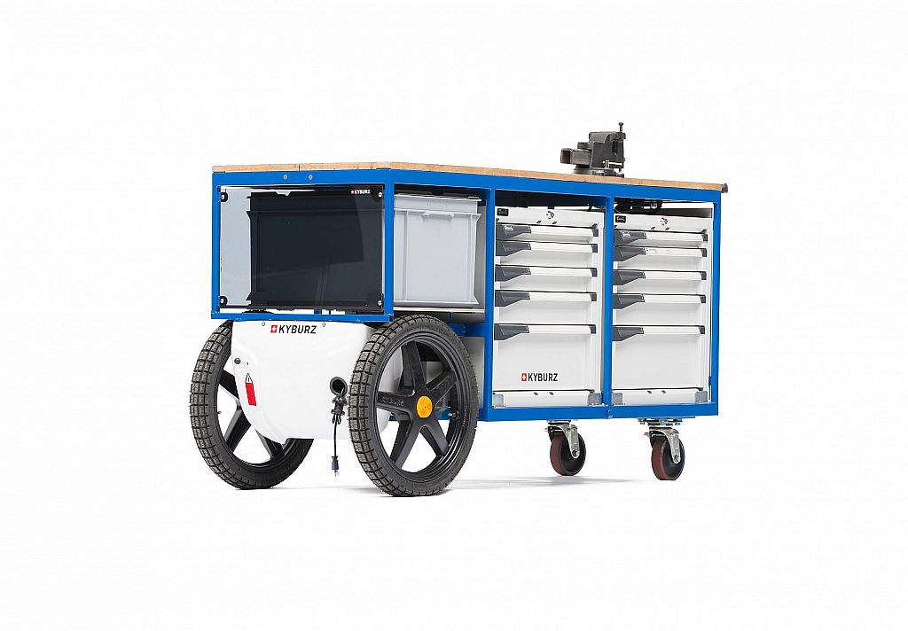 Le KYBURZ eTrolley transporte rapidement de lourdes caisses à outils de A à B. Doté d'un plateau, il facilite la distribution de la marchandise dans l'entreprise. Les possibilités d'utilisation sont multiples. Le chariot est adapté aux spécifications des clients.