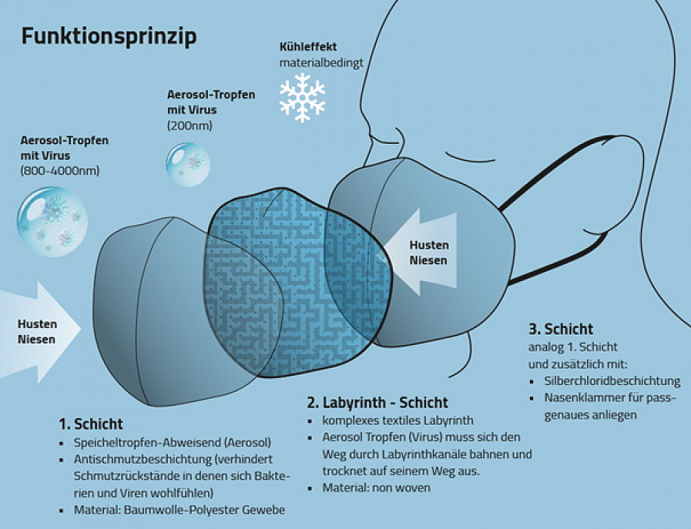 Ein Team aus verschiedenen Fachleuten entwickelte die mehrlagige Stoffmaske unter der Leitung von Pascal Eggman, dem Gründer der Firma UNREPA. Entstanden ist ein spezielles Gewebe (Liquid Virus Protection), welches antivirale, antibakterielle und hautverträgliche Eigenschaften aufweist. Die LIVIPRO Community Mask ist ein echtes Qualitätsprodukt, welches nachhaltig in der Schweiz produziert wird. Mittlerweile ist die Maske tausendfach im Alltag im Einsatz und schützt ihre Nutzer und ihr Umfeld. Nichtsdestotrotz wird die Maske unermüdlich weiterentwickelt.