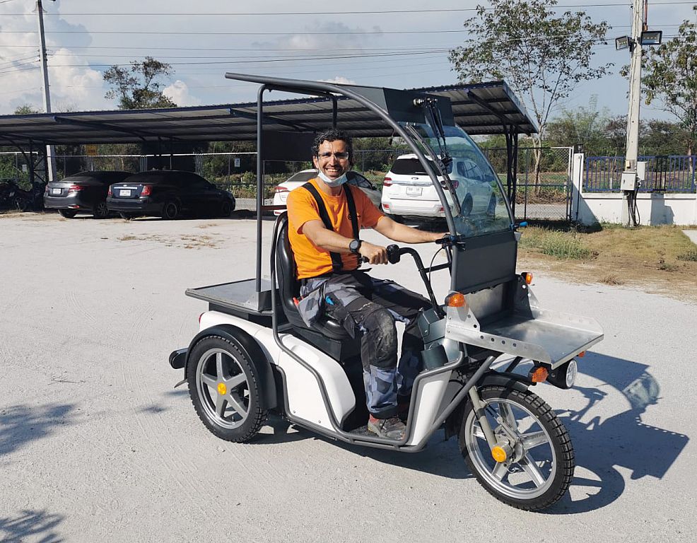 Als wir uns überlegt haben, unter welchem Namen wir unsere Fahrzeuge in Thailand vertreiben sollen, sind uns verschiedene Möglichkeiten durch den Kopf. Der Name KYBURZ hat den Nachteil, dass Thailänder nicht wissen, wie sie dies korrekt aussprechen sollen. Da der KYBURZ KYBEE in Thailand produziert werden soll, lag der Name KYBEE als Marke nahe. Dieser konnte aber nicht so verwendet werden, da «Ky» in Thailand «Kot» bedeutet. Somit haben wir uns am Schluss auf den Namen «K-BEE» geeinigt. «K» steht für KYBURZ und «Bee» heisst in Englisch Biene. Damit unseren potenziellen Kunden klar ist, dass es sich um elektrische Fahrzeuge handelt verwenden wir den Zusatz «Vehicles» (zu Deutsch «Fahrzeuge»). Das rote «E» und «V» ergeben zusammen «EV». Dies steht wiederum für «electric vehicles» sprich elektrische Fahrzeuge.